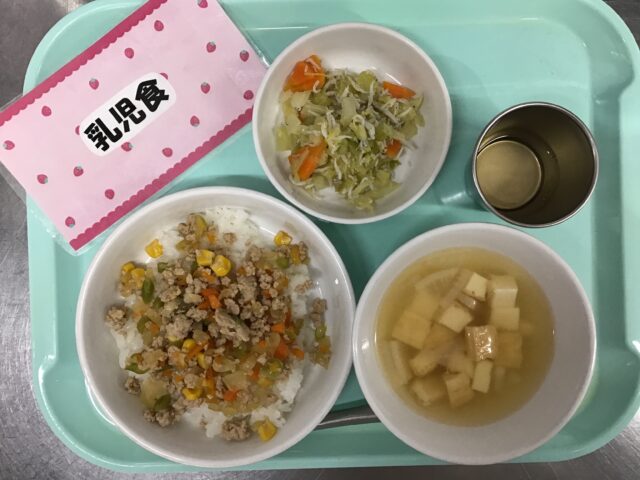 お肉と野菜が混ざっているので食べやすそうでしたと保育士さんからのお声がありました。
