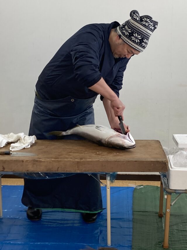 最初に魚のえらの部分に大きな包丁を入れると「あー」と声をあげる子もいました。