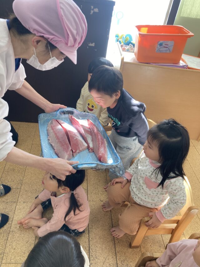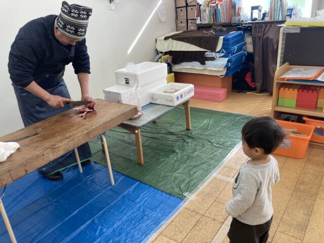 三枚におろした時「これがみんなの今日のお給食だよ」と言うと喜んだ表情をする子どもたち。