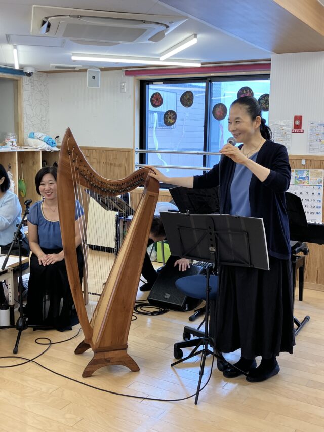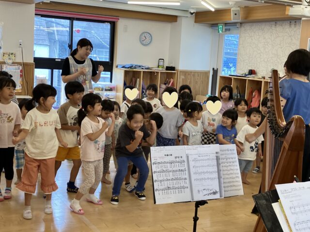 「きれいな音だね!」「おおきいな~!」と初めて見るハープに感動!