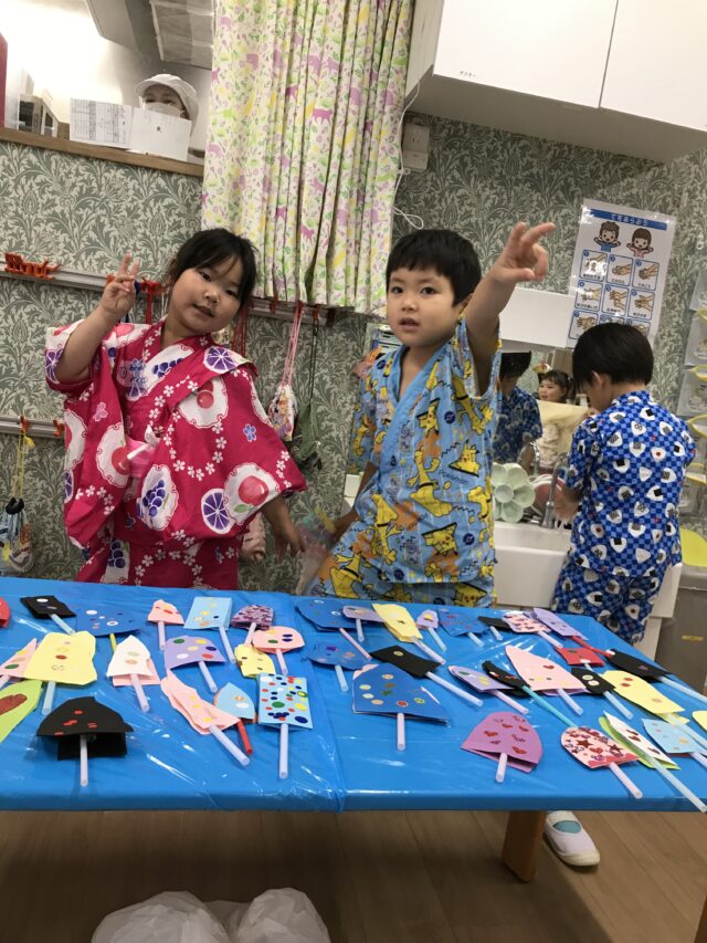 うちわを作ったり、提灯を飾ったりして、夏祭りの準備はバッチリ!