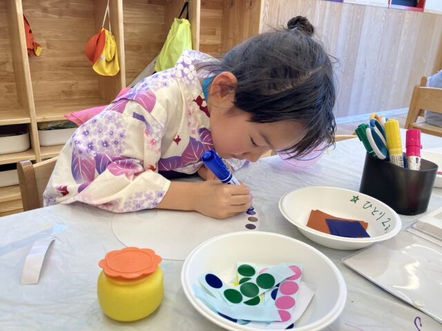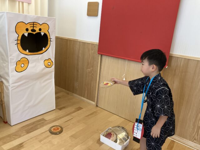 2025.08.2 保育園の日常、大岡山園 夏祭り 千束子どもの家大岡山園で夏祭りを行いました。 素敵な浴衣、甚平で参加してくれるお友だちがいました。 うちわづくり フリスビー 卒園したお友だちもたくさん来てくれました。 ご参加ありがとうございました。