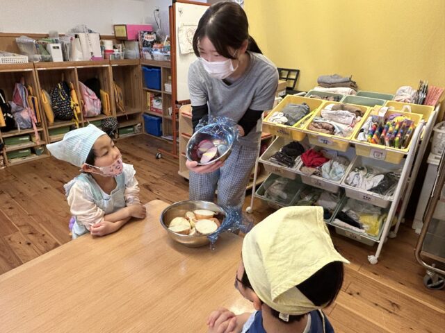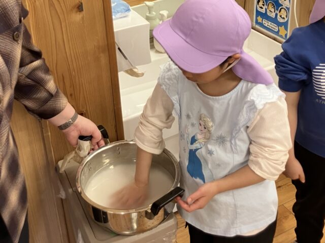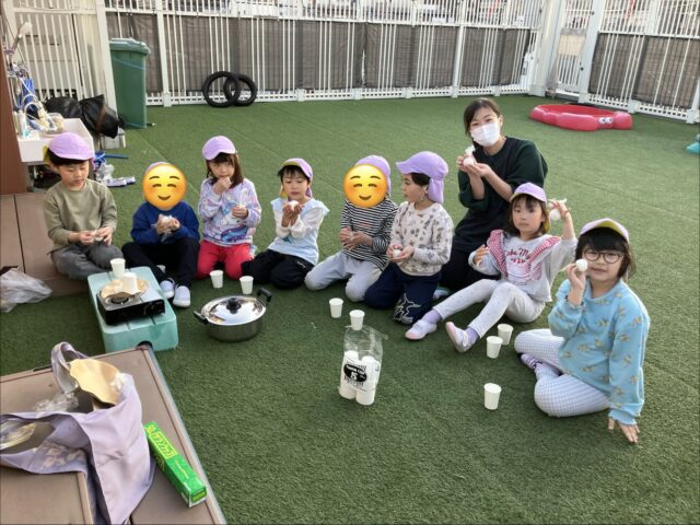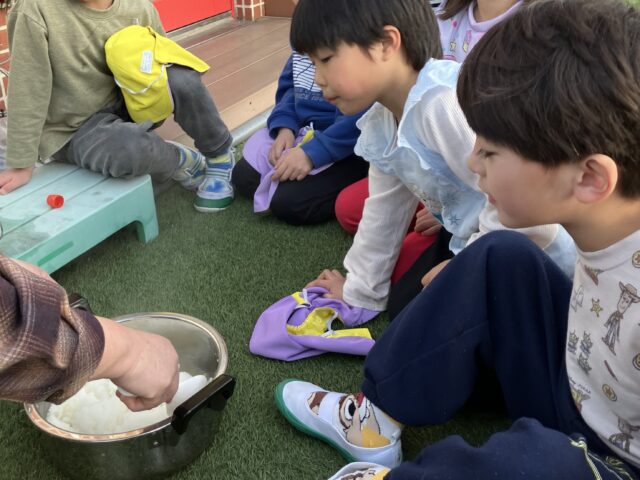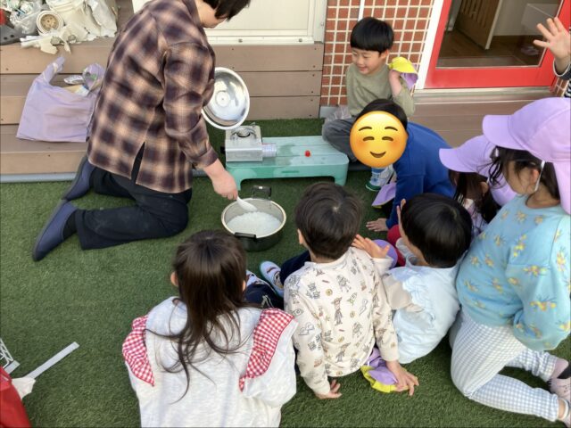 お米を研いで、屋上園庭で飯盒炊飯体験🍚