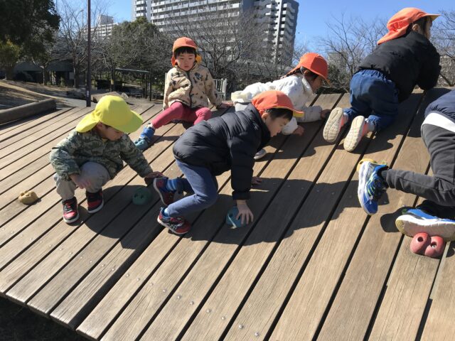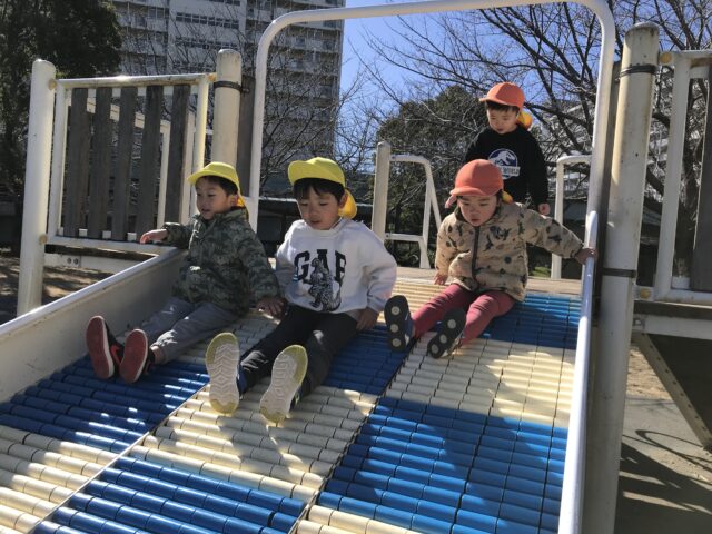 2026.03.3 保育園の日常、東葛西園 大島小松川公園に行ってきたよ~ 2月のとある日、原体験バスに乗って大島小松川公園に行ってきたよ~ なが~いローラー滑り台やアスレチック! いろんなものに挑戦したよ~♪ 思い切り遊んだら、お弁当タイム♪ また来ようね~☆