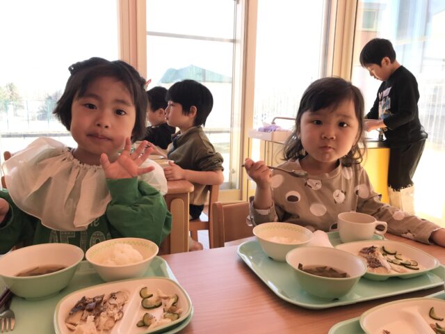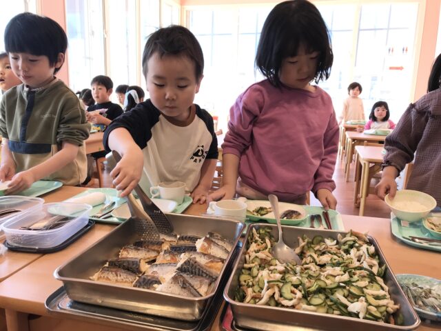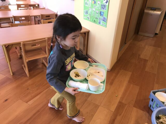 【3歳~5歳児クラス】幼児クラスはレストランがオープンしたら給食がスタートです。(開店時間は11:45~13:20となっています)