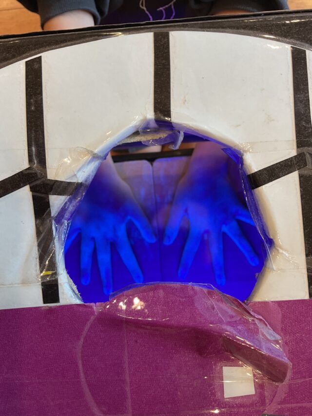 2025.12.4 保育園の日常、東葛西園 感染症対策!!! 手洗いして、感染症対策しよう! ということで、幼児クラスのみんなは手洗いチェッカーでしっかり手洗いをしたよ~ お話を聞いて 白いところは、汚れが残っているところ 自分で覗いて確かめてみたよ~