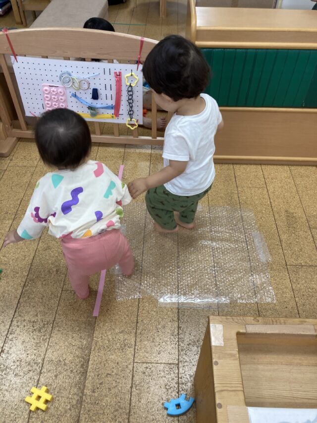 プチプチの上を歩いてみる。