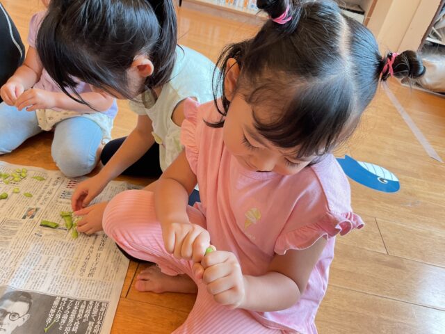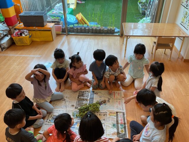 幼児クラスのみんなは枝付の枝豆見たことあるかな?