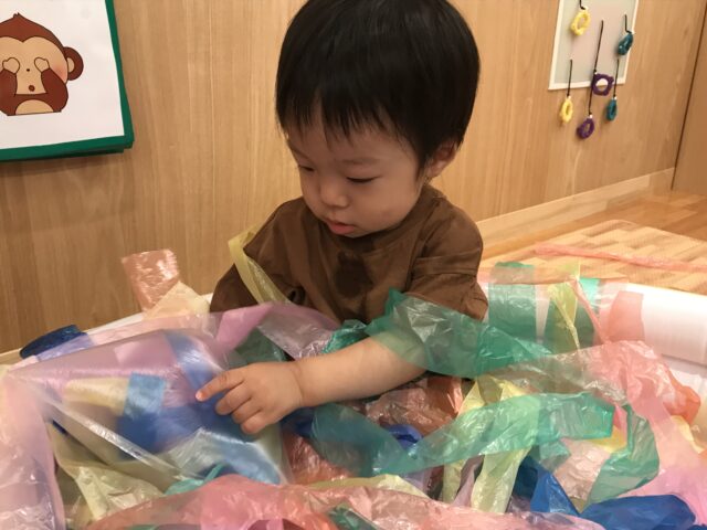 他にも、風船やスズランテープ・画用紙にも触れて楽しんだもも組さんでした🍑