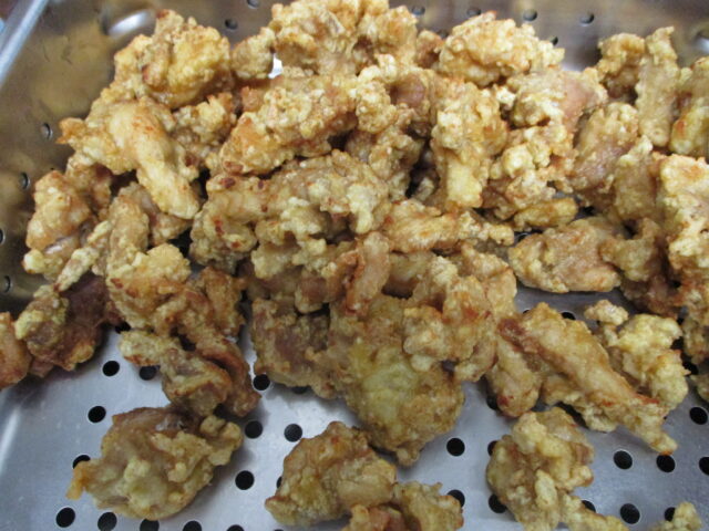 特に主菜の「カレーから揚げ」はカレー味のころもに付けながら一つ一つ丁寧に揚げています。