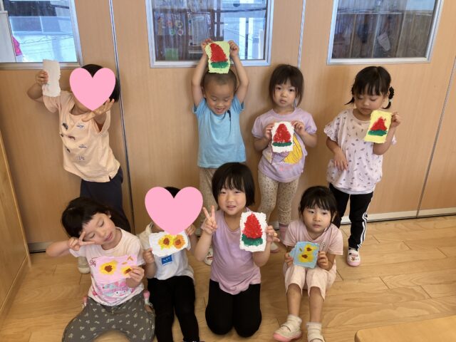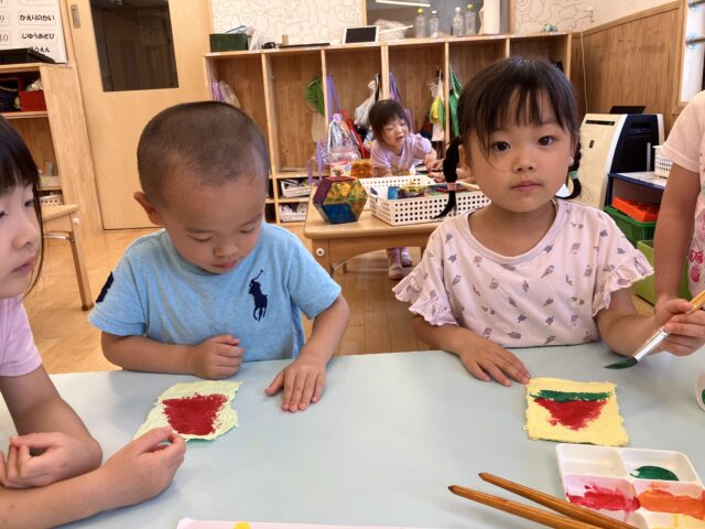 最後に夏らしい水彩画を子どもたちで描いてみました🖌すごーく素敵な絵ハガキが出来上がりました。