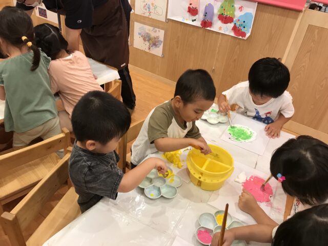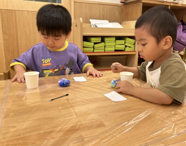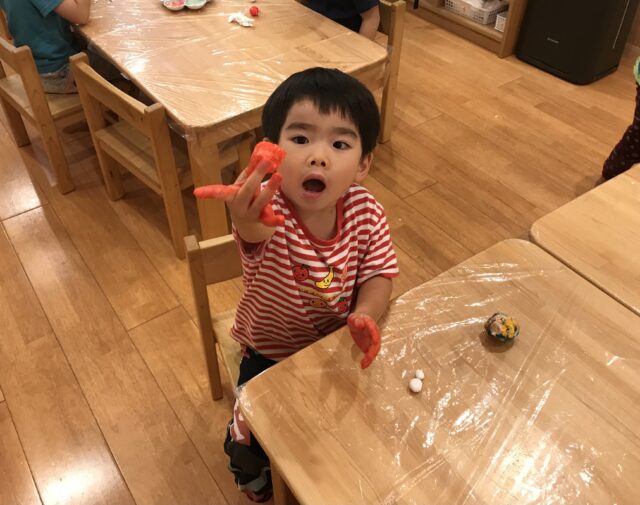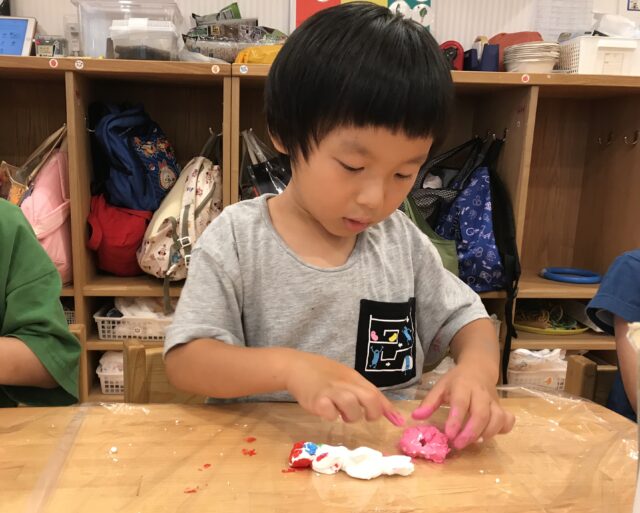 今度は、紙粘土に絵の具を混ぜてみよう♫