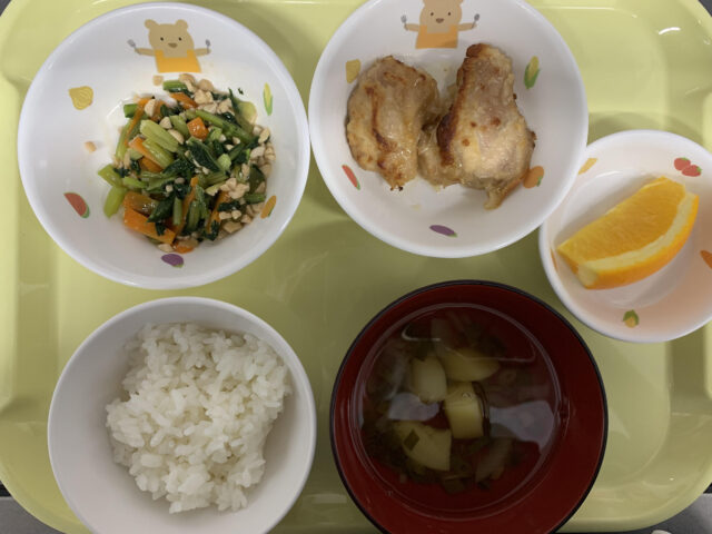 副菜の納豆和え♪給食の前に絵本で盛り上げて楽しく美味しく