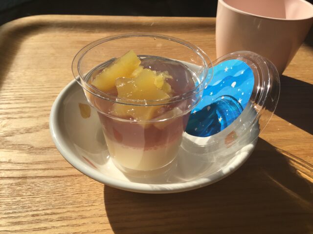 2026.04.1 ある日の給食 蓮沼園 おやつ うみのキラキラゼリー 3月のリクエスト給食のおやつは、先生の生まれ育った湘南の海を感じられるようなゼリーです。キラキラと輝くゼリーにとびきりの笑顔を見ることが出来ました。