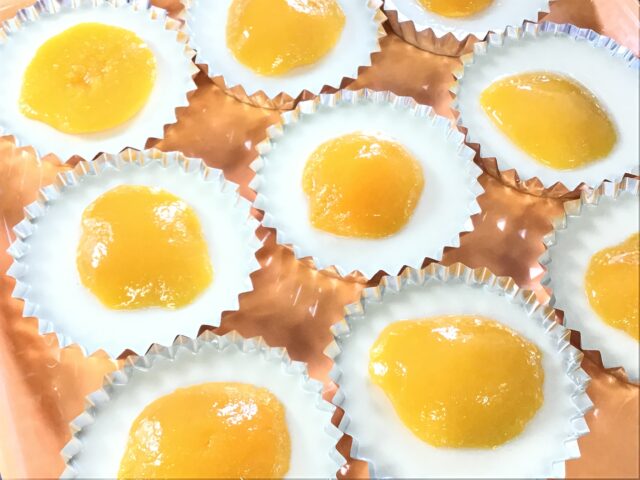 9月、職員リクエスト給食のおやつは、豆乳寒の上にスライスした黄桃缶をのせて本物の目玉焼きそっくりに作った「おかしなおかしな目玉焼き」9月の献立表を見て、何日も前から楽しみにしている子もいました。ワクワクするような給食のリクエストありがとうございました。