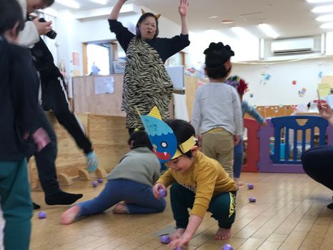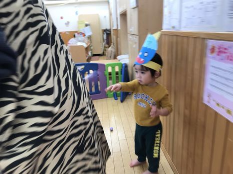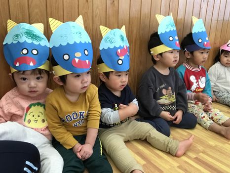 1月から保育の中でリハーサルを重ね、遊びの中で、鬼退治について学んできた子ども達。いざ本番では、鬼に負けないで頑張って鬼退治していました~😊