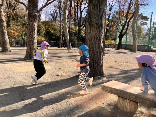 逃げる5歳児さん、追いかける3歳児さん。