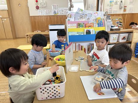 こちらは、朝の一コマ。それぞれに好きな遊びをみつけて、遊びます~