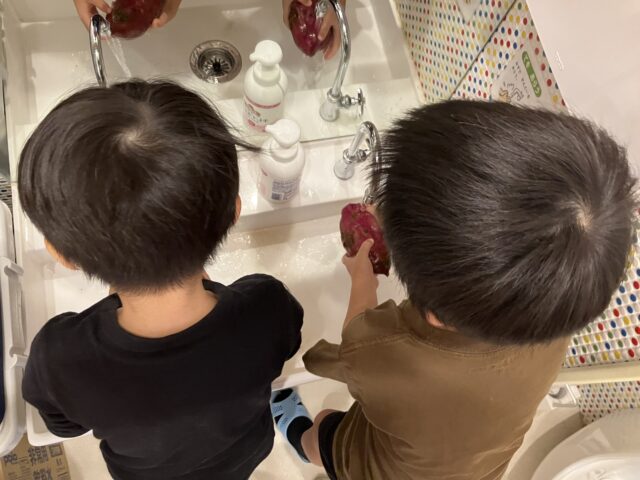 2025.11.18 保育園の日常、大岡山園 食べ比べてみよう!! 自分たちで1から育てたサツマイモを 食べる時がつ・い・に!!! ピカピカに洗って~ シンプルに茹でて食べ比べ! おぉー!色が違う!味も違う!と見た目だけではなく、味の違いも知る事ができました! さぁまだまだサツマイモは残っているぞー!!