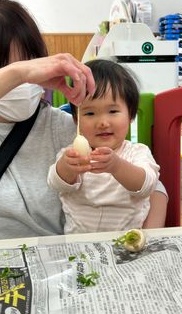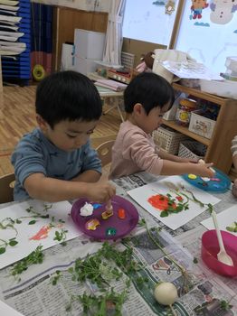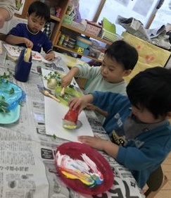 うさぎ組さんは、ダイナミックに野菜スタンプを楽しみました~