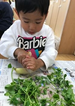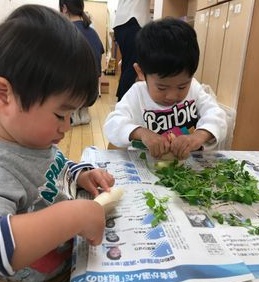 1月7日は七草でした。子どもたちは、七草にたくさん触れて、様々な発見や体験をしました。