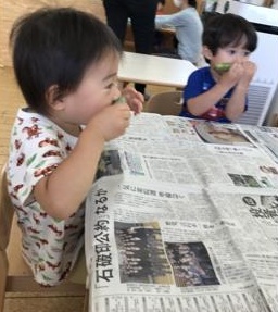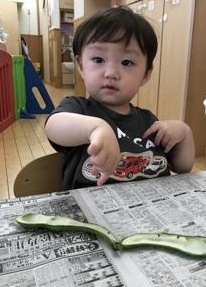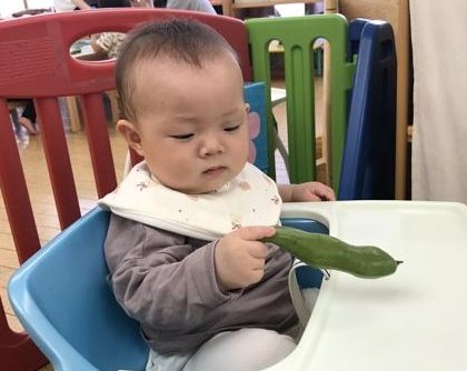 給食のご飯にそらまめが入っているのを見つけると、2歳児さんは愛おしそうに口に運び、もぐもぐ美味しそうに頬張って食べていました😊