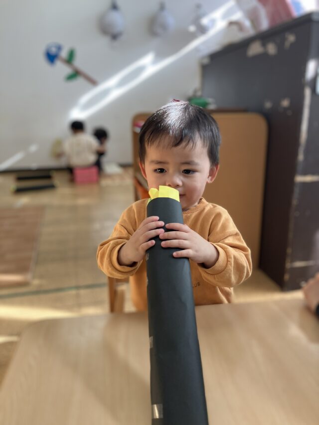画用紙で太巻きのお寿司を作り、モグモグして遊びました。