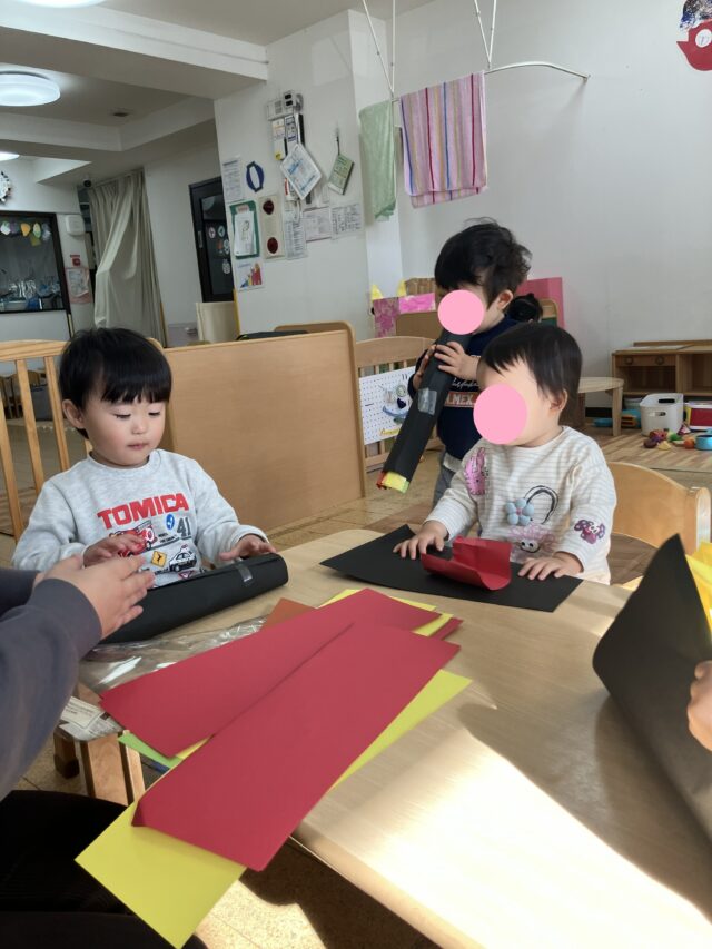 画用紙で太巻きのお寿司を作り、モグモグして遊びました。