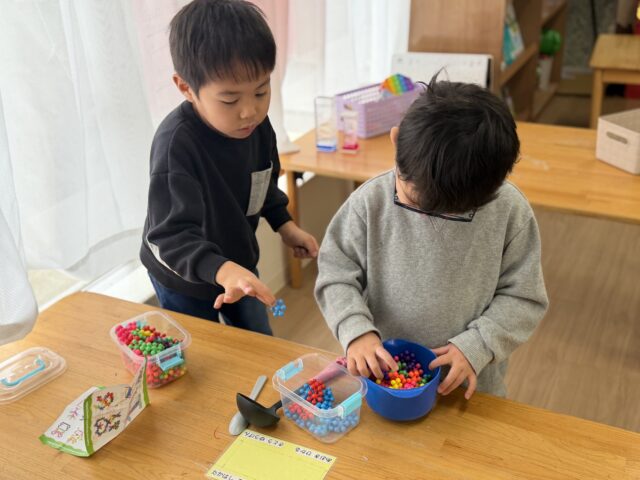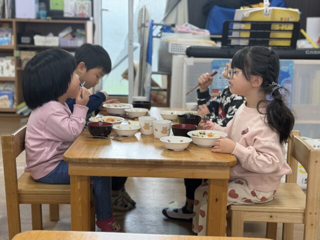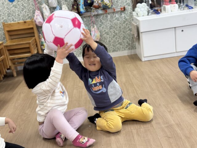 2026.02.21 保育園の日常、誉田保育園 3歳・4歳児の異年齢保育♪ 今日は3歳と4歳児も合同保育の遊びを紹介しますね♪ 4歳児の部屋には、新しいおもちゃが・・・♪3歳児は目がキラキラ★「これは、こうやって遊ぶんだよ♪」 「あれ?ぼくのパーツは青色がないな・・・」 「あった!あった!」 こっちでは、「ばくだんゲーム」音に合わせてボールをお友だちに渡していくよ♪どきどき♡ はやく、お友だちに渡さなきゃ~♡音が止まりそう~・・・ 音が止まって、ばくだんが~~爆発!!「ありゃありゃりゃ・・・爆発しちゃった~大盛り上がり♪ みんなで遊んだ後は美味しい給食の時間♡一緒に食べる給食って美味しいね♪