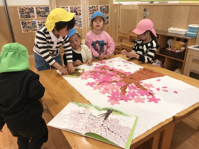 2026.03.30 保育園の日常、西葛西園 🌸春発見🌸 つくしとタンポポ見つけた〜♫ 桜もキレイだな〜! 花びらを集めよう♡ 何枚あるかな〜? お部屋にも桜を咲かせたい🌸と、みんなで作りました! キレイな桜が咲いたね🌸