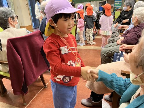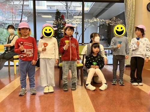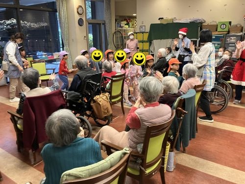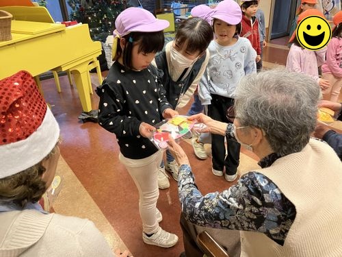 4・5歳児クラスは「たまがわデイサービス」のクリスマス会に参加し利用者の皆様と楽しいひと時を過ごして来ました。
