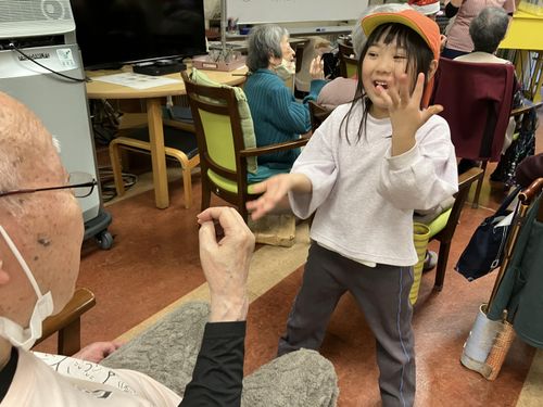 最高年齢93歳!平均年齢80歳超えのご長寿の皆さまでしたがとってもお元気な方達で一緒に体操やジャンケンもして世代間交流をしっかり楽しんでいました。