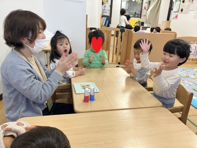 2歳クラスに続き、1歳クラスでも手洗いの健康教育がスタートしました。