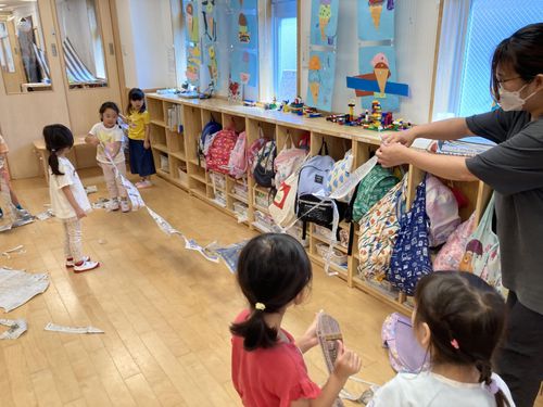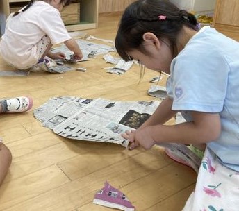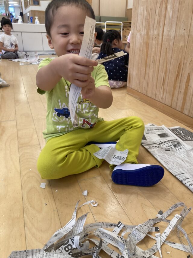今日も暑いですね!今日は4歳児クラスは新聞遊びをしました