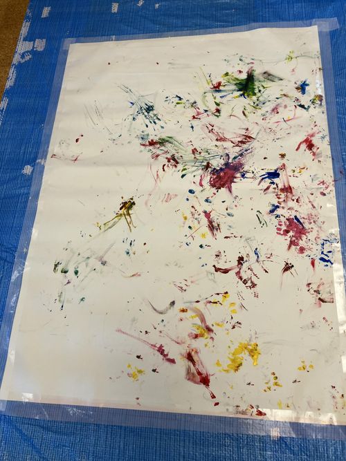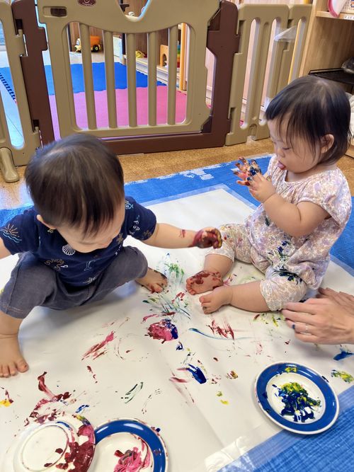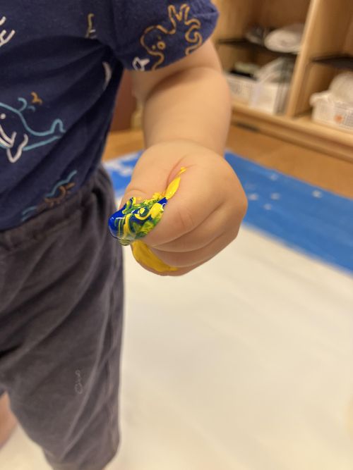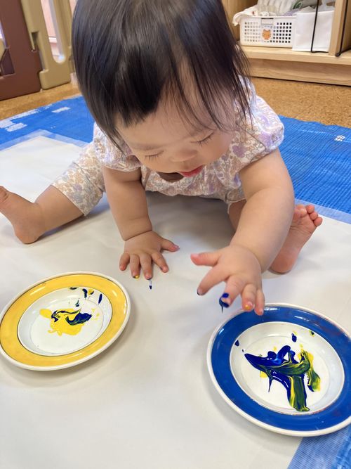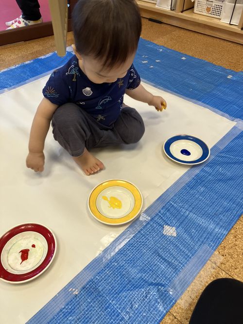今日は絵の具でフィンガーペインティングです。