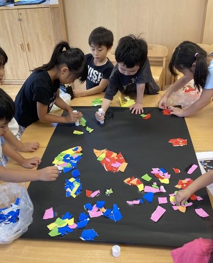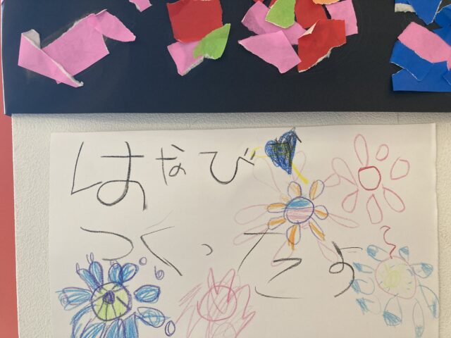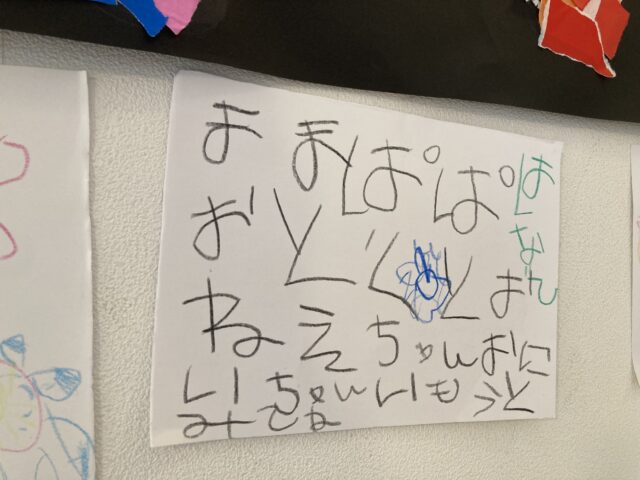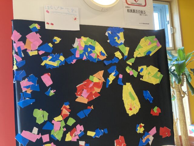 2025.08.14 保育園の日常、西馬込駅前保育園 保育園のみんなへ 数日前のぱんだ、ぞう、らいおん組のちぎり絵チームの作品を覚えていますか? (※数日前のブログ参照) ここにしよう!と階段に飾られた作品。 ふと見ると、階段に飾られ、そこに、メッセージが貼られていました。 思いが伝わってきますね^^