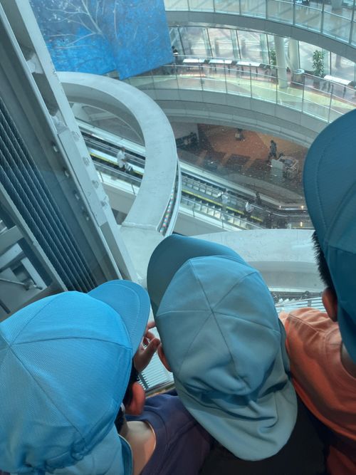 透明エレベーターで移動します。 よく見えるね✨
