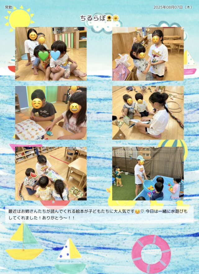 ここ数年小学校が夏休みのこの時期に、保育園にお手伝いに来てもらっています。
