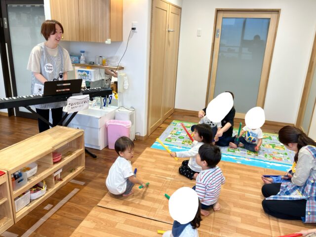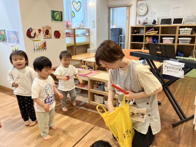 2025.05.1 保育園の日常、水天宮前園 【1.2歳児クラス】英語リトミック3 3回目の英語リトミックがありました。 今日もピアノの音に合わせて歩いたり走ったりするんだって! 動物になりきるのもお手のもの。ライオンに変身したよ🦁 床を叩いて音が鳴るスティックに大喜びの様子☺️ 今日の英語リトミックも楽しかったね!