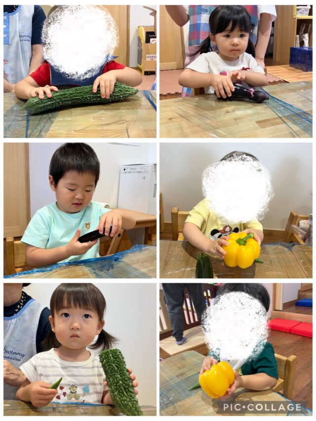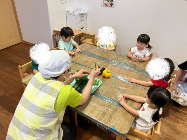 食育で夏の野菜を見たり触ったりしてみました🍆🥒