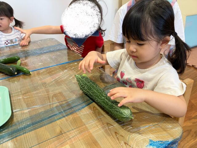 イボイボのゴーヤの表面を触って感触を楽しんでいました⭐️