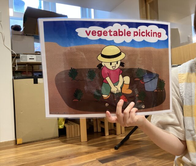 9月の英語リトミックのテーマは『vegetable picking』