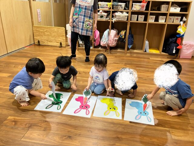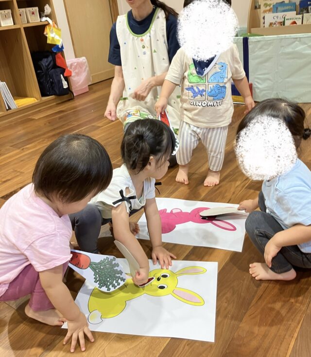 最後はピアノの音に合わせて、うさぎさんに人参をあげました🐰