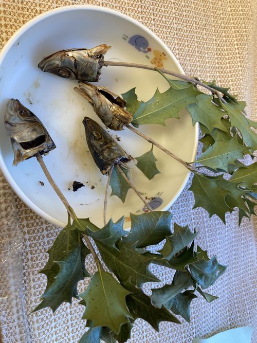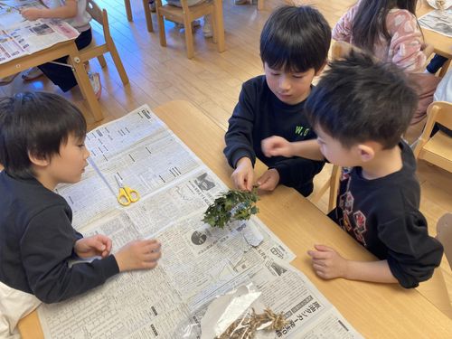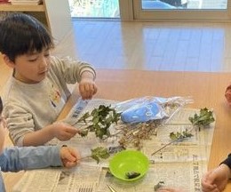 2026.01.30 保育園の日常、西馬込駅前保育園 あなたはどう?ヒイラギいわし 2月になりますね。もうすぐ節分です。 鬼が苦手とされる「ひいらぎのチクチク」と 「焼いたイワシの匂い」 チクチクに気を付けて… イワシの頭を… えいっ!! ヒイラギいわしの完成です✨ 「平気!」「いいお魚のにおいだな」 感想は様々なようです。 玄関に飾りましょう!✨