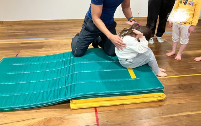 マットでは、2連続の前転と、初めて後転に挑戦🫡