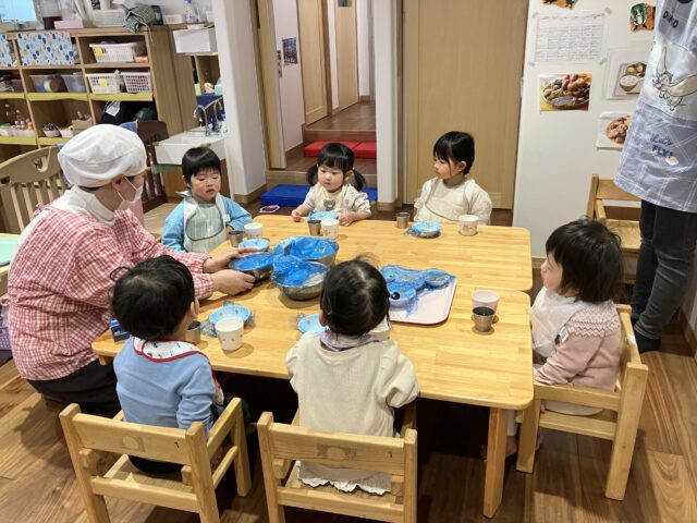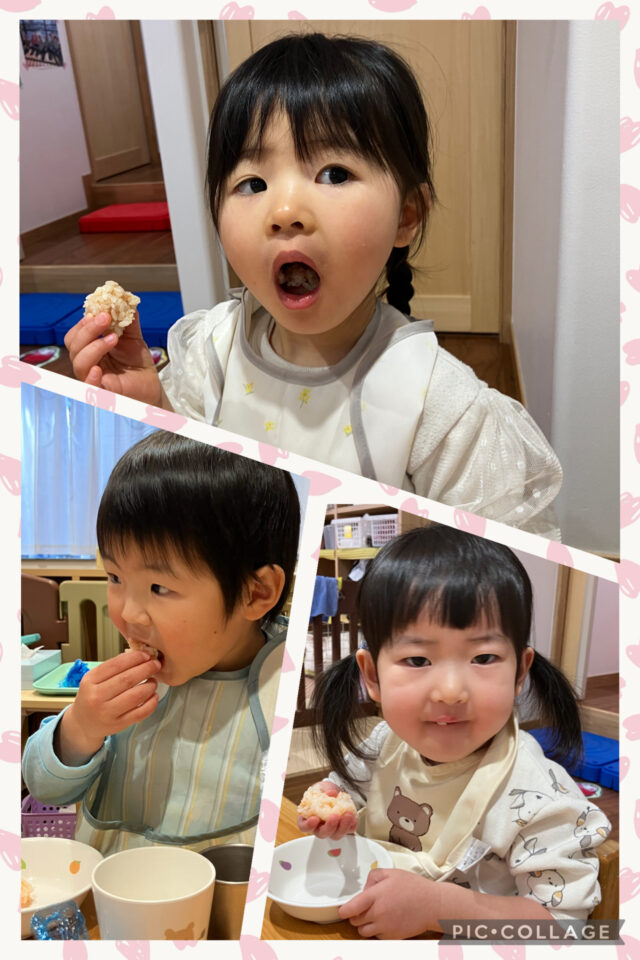 食育で、おやつのおにぎりを自分たちで握ってみました🤲