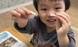 もやし・ほうれん草に触れてみたよ♪2歳児♪