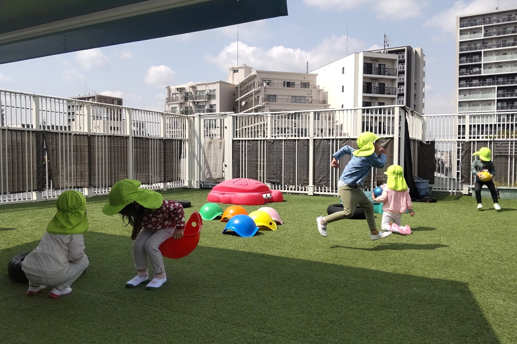 | 園庭について | 屋上園庭(人工芝)を設置しております。 |