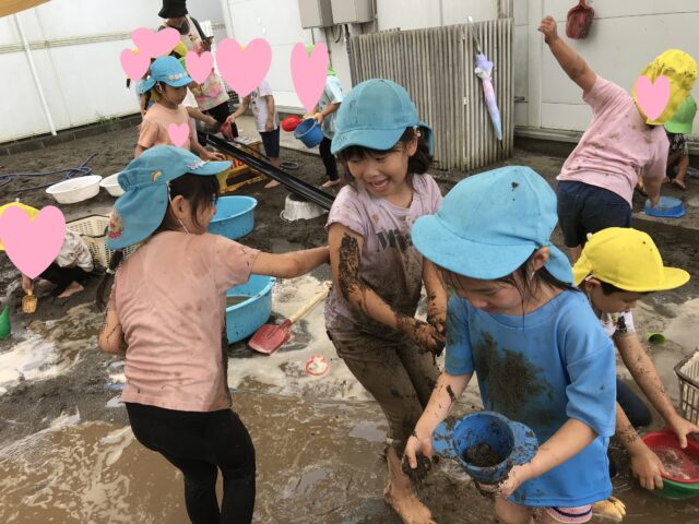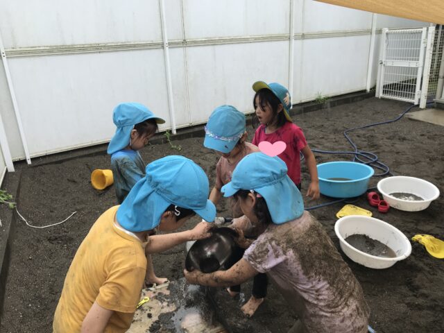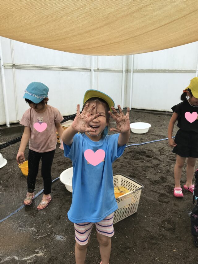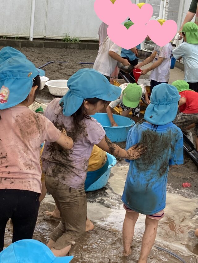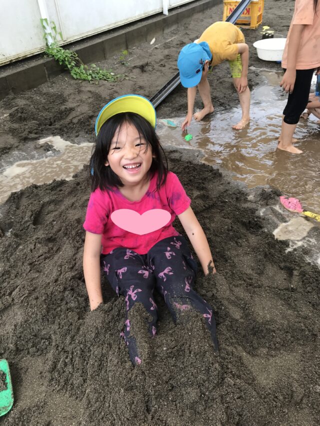 2025.07.17 保育園の日常、東葛西園 THE☆どろんこ遊び 7月16日、この日はくじら組のみんなは誉田園に遊びに行ってきたよ~ 雨は降ったり止んだりだったけど、どろんこ遊びを満喫してきたんだ♬ 背中ぬりぬり~泥パック❤ 埋まってみた! 思い切り遊んでみんな大満足!